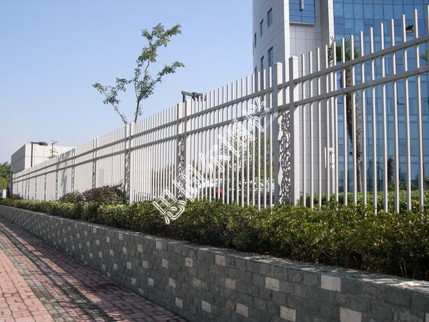 組成:新型柵欄,由不同規格的方管組裝而成,使用的材料均為熱鍍鋅鋼管進行靜電噴涂處理.靜電噴涂柵欄由鋼管、不銹鋼防盜螺栓和各種裝飾圈組成。