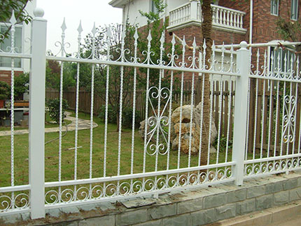 圍墻鐵藝欄桿采用無焊穿插組合方式進行安裝,基材厚度是不銹鋼的2-3倍,500多種顏色可供選擇,表面采用歐洲進口阿克蘇諾貝抗氧化粉末靜電噴涂,增強了護欄的抗氧化抗紫外線、耐候耐腐能力。