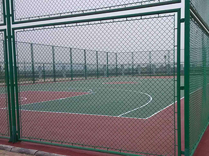 籃球場圍網表面處理:圍網采用PE/PVC包塑絲,立柱、邊框采用噴塑、浸塑處理