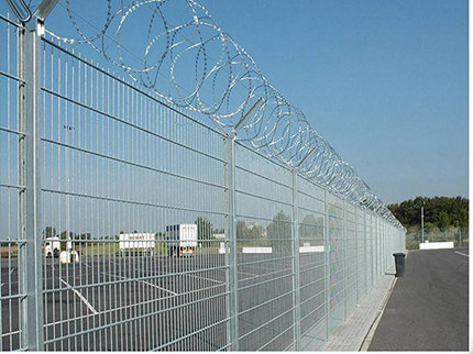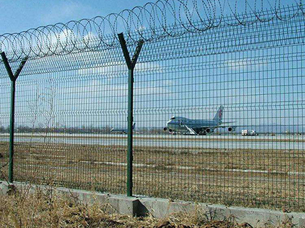 機場隔離網又稱作“Y型安全防御護網”,機場護欄網是由V型支架立柱,加強型焊接片網,安全防盜連接件和熱鍍鋅刀片刺籠組成強度和安全防御性級別很高。近年來,被廣泛應用在機場,軍事基地等高安全場所。